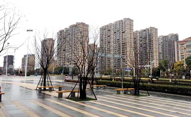 陽澄鄰里中心景觀工程主要包括北側(cè)主廣場石材鋪裝和四個苗木組團(tuán)共同構(gòu)成,其中綠化組團(tuán)由主廣場樹陣、西側(cè)生態(tài)停車場綠化帶、鄰里中心主入口區(qū)及南側(cè)卸貨區(qū)。苗木主要有櫸樹、烏桕、香樟、樸樹、柿樹等,整體觀感做到四季有賞、落葉常綠分明。