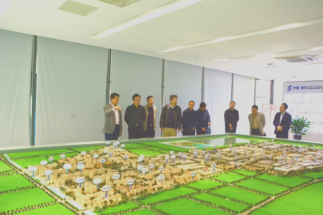 在園區(qū)管委會(huì)一樓規(guī)劃展廳,劉建華副總裁向楊民副總經(jīng)理一行詳細(xì)介紹了園區(qū)先進(jìn)的規(guī)劃理念和未來發(fā)展藍(lán)圖。