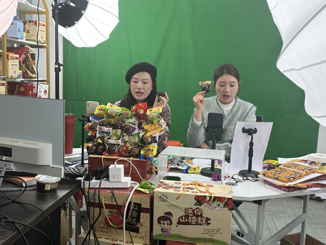 當(dāng)天,電商產(chǎn)業(yè)園內(nèi)的“直播大棚”人氣爆棚。主播們在鏡頭前與消費(fèi)者展開互動,充滿激情地介紹各類商品,通過生動的語言和直觀的展示,將商品的特點(diǎn)和優(yōu)勢傳達(dá)給觀眾,引導(dǎo)他們進(jìn)行購買,主播們還以抽獎、送禮等方式增加直播的趣味和互動,吸引更多觀眾的參與。
